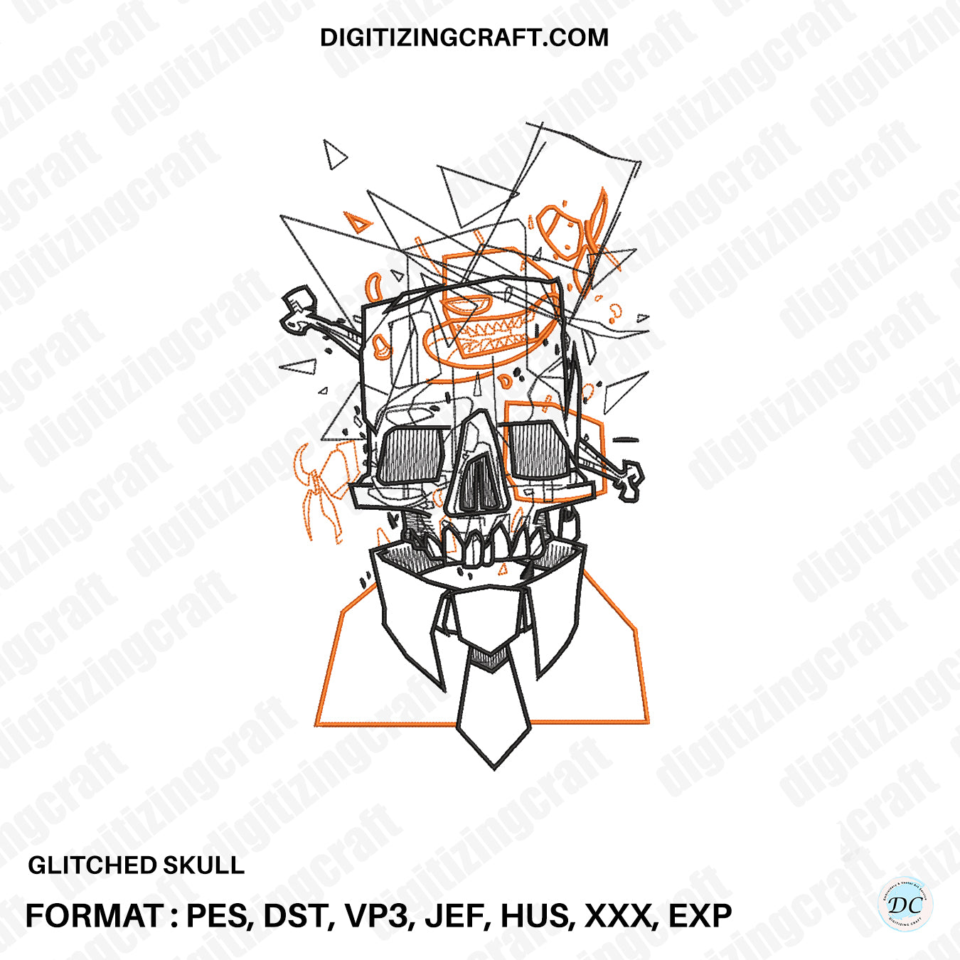 Glitched Skull Embroidery Design File