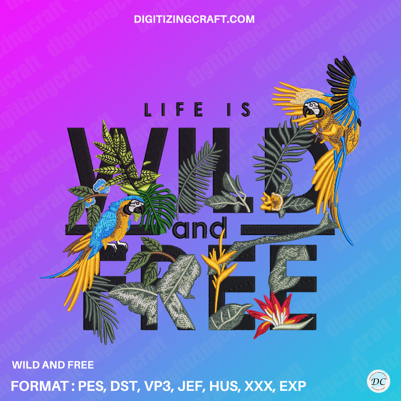 Wild And Free embroidery design file